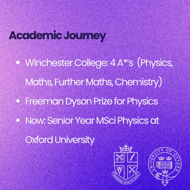 • A Levels: 4 A*’s in Physics, Maths, Further Maths and Chemistry.